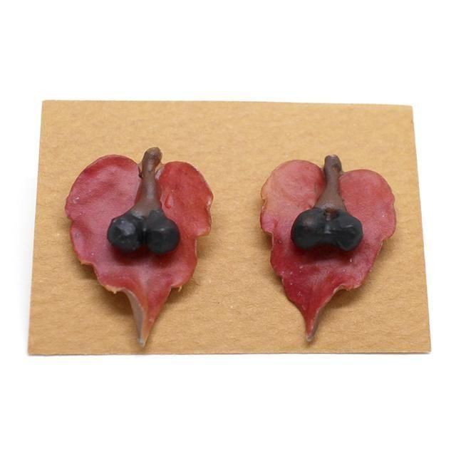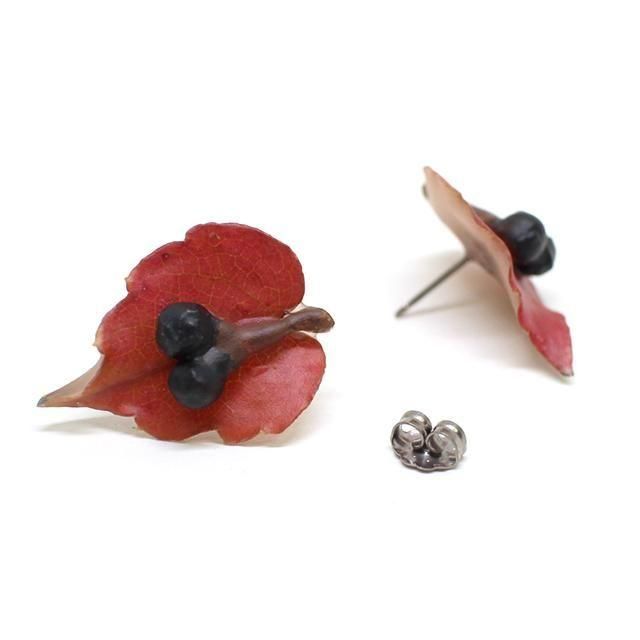 真っ赤なツタの葉に実を配した、苑工房定番のピアスです。