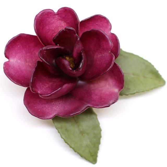 さっきまで庭に咲いていたような、サザンカのブローチです。