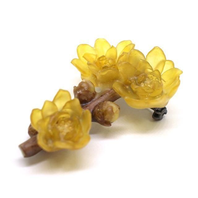 まるで飴細工のような、透明感のあるロウバイのブローチです。