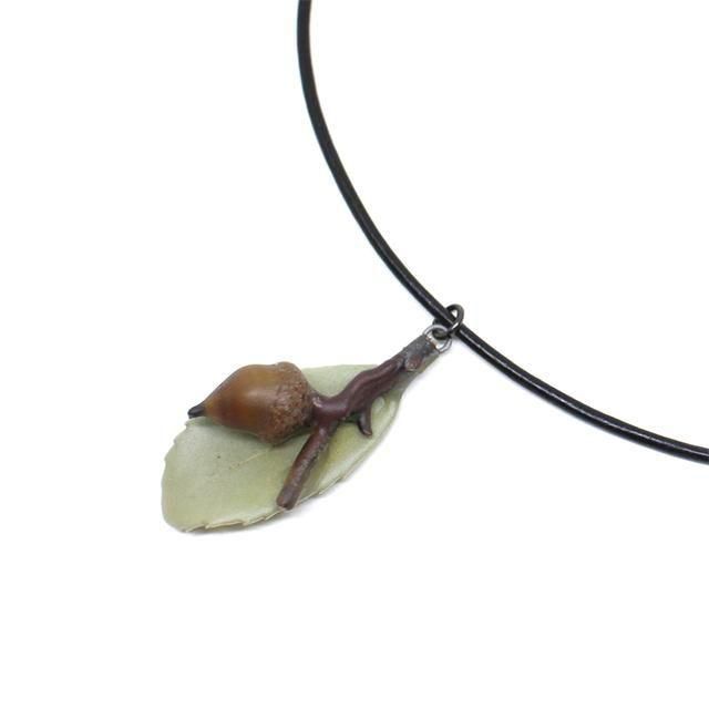 小さな小さなドングリを、葉とともにチョーカーに仕上げました。