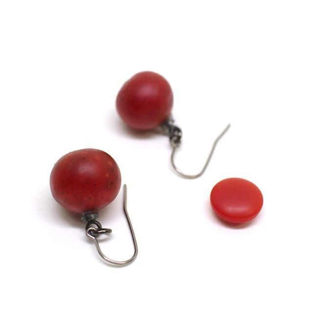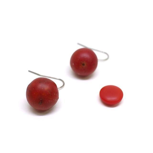苑工房定番、サンキライの真っ赤な実が耳元でゆれるピアスです。