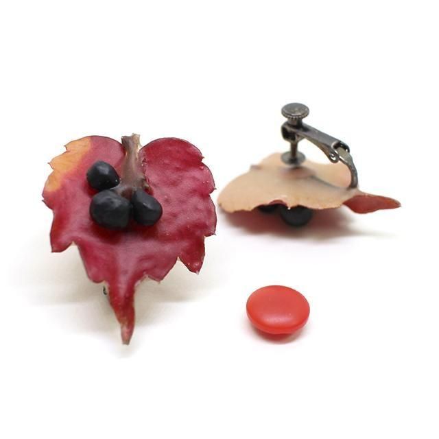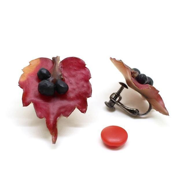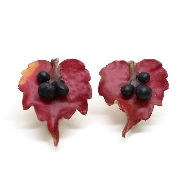 真っ赤なツタの葉に実を配した、苑工房定番のイヤリングです。