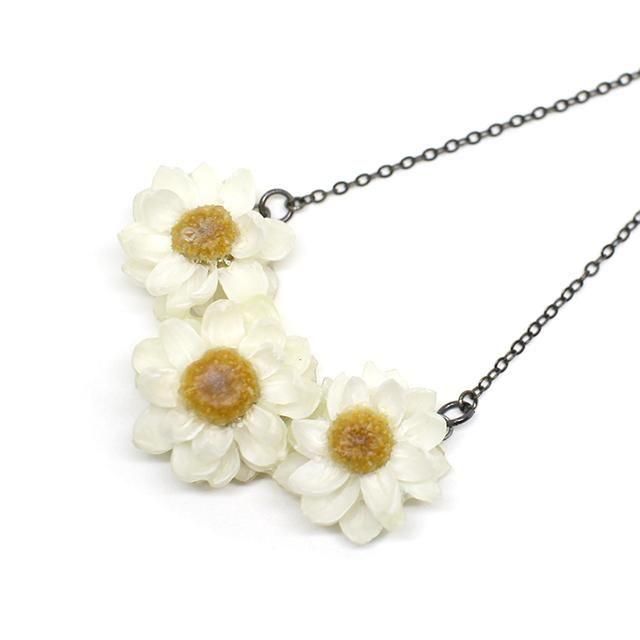 白くて丸い花が愛らしい、花かんざしのラインネックレスです。