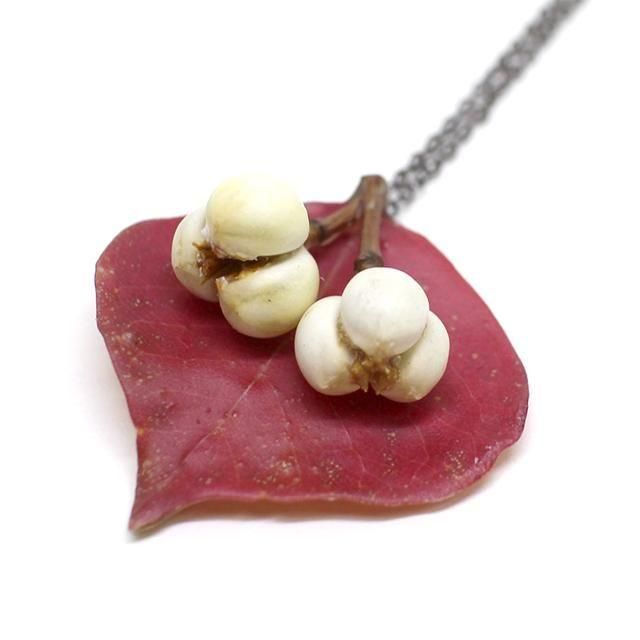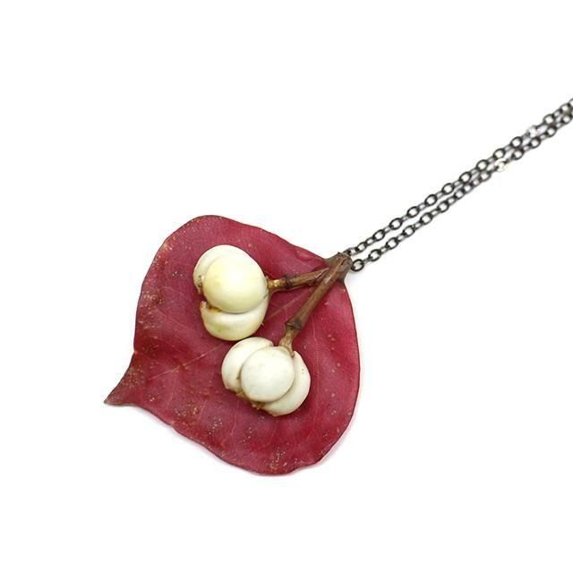 紅葉した葉に白い実が映える、ナンキンハゼのペンダントです。