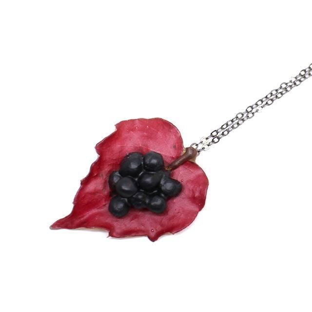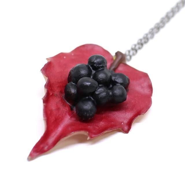 真っ赤なツタの葉に実を配した、苑工房定番のペンダントです。