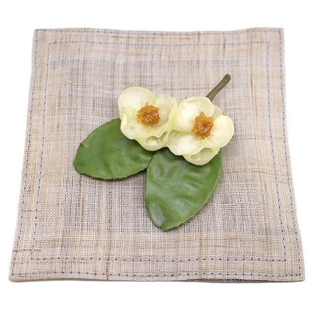 丸みを帯びた白い花が可愛い、チャノキ(お茶の花)のブローチです。