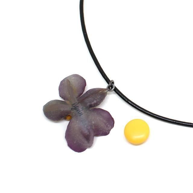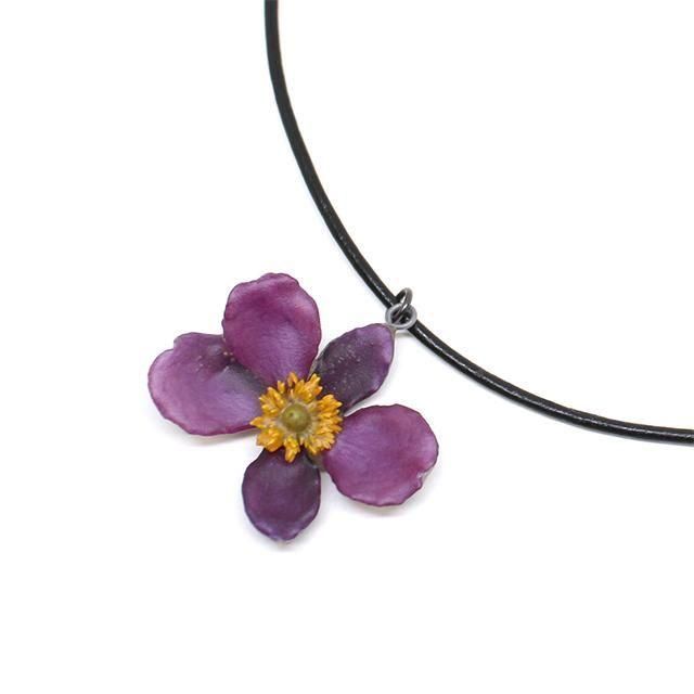濃いピンクに黄色が鮮やかな、秋明菊のチョーカーです。
