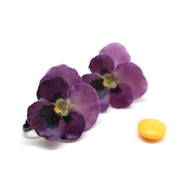 苑工房久々のニューフェイス。ビオラ(パンジー)のイヤリングです。