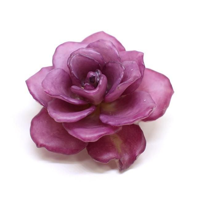 しっとりと深い紫が魅力的な、薔薇のブローチです。